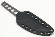 This knife by John Barker features a bead blast finished blade with false top edge and notched thumbrest, .159" blade stock and .884" blade depth, full tang construction. Comes with a kydex sheath. Has some scratches. Comes with kydex sheath, patch and stickers. Great condition otherwise.