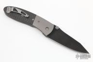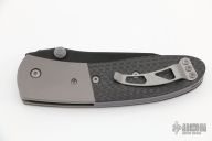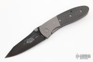 This Lightfoot LCC D/A side opener by Microtech has a black blade, bead blast aluminum bolsters, and carbon fiber scales. Stainless steel clip and liners. Dated 10/2000 and #0715. Includes original box, papers, and a nylon sheath. Excellent condition.