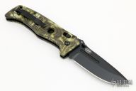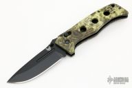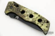 This Siebert designed 275 Adamas Axis Lock has a black coated drop point blade with fullers and notched thumbrest. The handle has Cryptek coated G10 scales over black stainless steel liners, reversible tip up black stainless steel clip. Comes with original box and papers. Excellent condition.