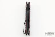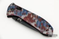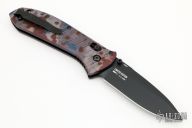 This 570 Presidio II by Benchmade features a black drop point blade with swedge and dual thumb studs. The handle is comprised of camo anodized and machined aluminum over black steel liners and barrel spacers. Axis lock mechanisim. Black coated tip up clip is reversible for left or right hand carry. Includes original box and papers. Excellent condition.