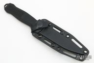 The Benchmade 133BK Fixed Infidel is a full-tang tactical fixed blade designed after the iconic Benchmade Infidel out-the-front knife. Its double-edged blade is made from resilient D2 tool steel in a black coating. Grooved, black anodized aluminum scales provide absolute grip security. Includes a Tek-Lok compatible Boltaron sheath.