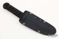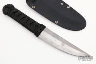 This Kwaiken by Steve Corkum features a hand rub satin finished blade with nice hamon, .263" blade stock and 1.25" blade depth, hidden tang construction. The handle has black cord over black skin. Comes with a kydex sheath. Has oxidation on the blade, great condition otherwise.