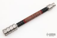 This Small Titanium Pocket Mace by Patrick Ober features a stacked leather, black linen and red linen micarta shaft with titanium ends. The head is 1" in diameter and the butt is .875" in diameter. New from maker!