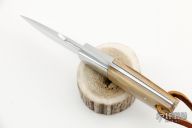 D'Alton Holder was born in Heald, Texas in 1940, was raised in Amarillo and graduated from West Texas State University with degrees in Fine Arts and English Literature. He retired early after 25 years with Diamond Shamrock Corp to become a full time knifemaker in 1988. He began making knives in 1968, joined the Knifemakers Guild in 1973 and was elected to the board in 1976, secretary/treasurer in 1978, President 1982, he served as Vice President 1984. Re-elected to board in 1988 and was elected President again in 1996. Received the Red Watson award in 1982. Named to the NSSF Hall of Fame in 1983. D'Alton is an avid horseman, hunter and fisherman. He prefers to work with natural handle materials and ATS-34. D'Alton has taught over 75 knifemakers, including people like Jim Hardenbrook and Bill Cheatham. Many of his knives are engraved by his wife, Pat Holder. Inducted into the Blade Magazine Cutlery Hall of Fame in 2003. D'Alton passed away in 2022.