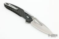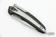 This ZT is reliably strong thanks to its steel construction. Other elements pay homage to the original 0999, including an exposed “floating bridge” near the top of the handle, carbon fiber scales with a front steel overlay, and cutout windows in the blade and near the pivot. Instead of a ZT logo on the blade itself, the words “Zero Tolerance” are subtly embossed into the backspacer. The CPM-20CV blade offers excellent edge retention and opens reliably with KVT ball bearings. Includes the original box and papers. Ser 0271. Excellent Condition.