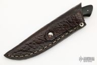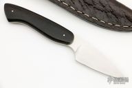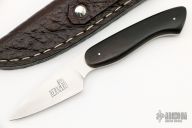 This knife by Arno Bernard features a hand rub satin finished blade, .130" blade stock and .992" blade depth, full tang construction. The handle has ebony wood scales. Comes with a brown leather sheath. Has a few light scratches, otherwise excellent condition.