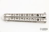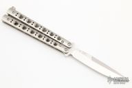 This Model 62 Balisong by Benchmade features a stonewashed spear point D2 blade with a false top edge. The handle has stainless steel handles and latch. Comes with original box, papers, and sheath. Excellent condition.