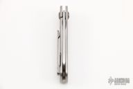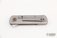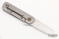The Mini-Plugger framelock flipper by Alan Kritzman features a hand rub satin finished blade with a notched flipper.  The frame is bead blasted titanium with matching clip and backspacer. Rides on bearings, nice detent, lockup and blade seating. Has some light scuffs, otherwise excellent condition. Comes with original box, zippered case and COA dated March 2019