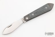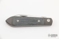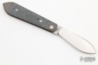This Low Drag Jack is a Teardrop slipjoint model by Jack Wolf Knives featuring a satin finished drop point blade with nailnick. The handle has integral bead blast finish pinched and fluted titanium front and rear bolsters and liners, black micarta scales with a stainless spring. Comes with box, metallic tube with Sean Tiffany artwork, leather slip, sticker and microfiber cleaning cloth. New from Maker.