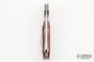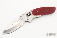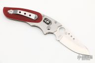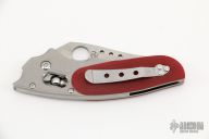 This Phoenix by Spyderco is a Howard Viele Design. The blade is satin finished with thumbhole opening. The handle has a titanium frame with red G-10 scales, stainless steel backspacer, and a tip up stainless steel clip. New condition. Comes with original box and papers. Still has protective covers on the handle.