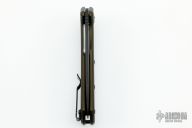 This 0770 Linerlock Flipper (#0583) has a black drop point blade with notched thumb rest. The handle has an OD frame with stainless steel single liner (lock), and black stainless steel tip up clip (RH/ LH reversible). Nice action, lockup and blade seating. Comes with original box. Excellent condition.