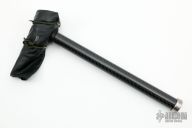 This war hammer by Jeremy Marsh has a satin finished titanium head. Hammer head is 5.5" long with a 1.75" diameter. Carbon fiber handle with titanium butt. Great look and feel. Leather lanyard with skull bead on pommel. Excellent condition.