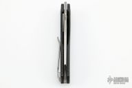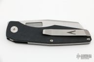 This Axon Third Run Folder by Vero Engineering features a satin finished blade with notched thumbrest and thumbhole. The handle has carbon fiber scales with inlaid liner, titanium tip up clip with hidden screws, titanium backspacer. Rides on bearings, nice detent, lockup and blade seating. Comes with zippered case and COA #1466. Excellent condition.