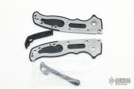 The AD20.5 by Demko Knives features the impressive Shark Lock and an even more impressive price point. The Shark Lock mechanism is situated on the spine of the knife and operated with a ramp-like ‘fin’, allowing you to flip the blade open and closed at will. It's probably the best thing about this knife and design, how quickly it can be deployed and ready for action. It acts as a blade launcher and a little wrist action is all it needs. Comes with original box and extra clip. This one has a black blade and bead blasted titanium scales from "Rock Scale Design". Has some scuffs, otherwise excellent condition. Comes with original scales and liners.