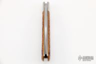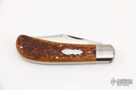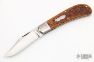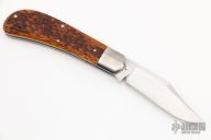 The Lanny's Clip by Reese Bose features a hand rub satin finished clip point blade with swedge and nail nick. The handle has stainless steel bolsters and liners, jigged bone covers, stainless steel spring. Has half stop, flush in all positions. Excellent condition. Comes with nylon zippered case. Marked #4 on ricasso.