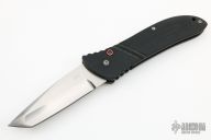 This LDC3 Auto by Mel Pardue features a hand rub satin chisel ground tanto blade with false top edge. The handle has a black linen micarta frame with stainless steel backspacer. Nice action and lockup. Has some light scuffs, excellent condition otherwise.