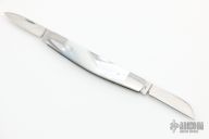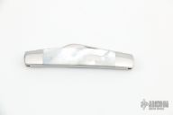 This Congress Slipjoint by Eugene Shadley features hand rub satin finished blades with nail nicks. The handle has stainless steel bolsters with integral liners, mother of pearl covers with stainless steel pins, stainless steel spring. Includes a padded zippered case. Excellent Condition.  #878