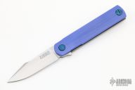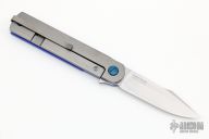 This MS2 Manhattan Special by Michael Zieba features a tumble finish blade with notched thumbrest and flipper. The handle has a g10 frame, with inset linerlock, anodized titanium hardware. Rides on bearings, nice detent, lockup and blade seating. Excellent condition.