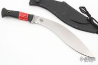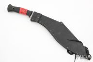 The Kukri blade, with its markedly downward curved blade, has long been identified with the Gurkha Warriors of Nepal, the ferocious mercenaries who have wielded this blade for over 150 years in the service of the British Empire. The Cold Steel Gurkha Kukri was inspired by Cold Steel President, Lynn C. Thompson’s close association with Dr. Maung Gyi, chief instructor of the American Bando Association, and a renowned martial artist with wide-ranging knowledge and skills. Under Dr. Gyi’s tutelage, Lynn gained insight into the full potential of the Kukri and learned it was not just a chopping weapon but a piercing, slashing, and smashing weapon as well. Smashing techniques allow the Kukri to function as a hammer or mallet or to deliver non-lethal blows in a self-defense role. A concentrated blow with the back of the blade can break bones or be lethal if directed at the head. With Dr. Gyi’s input, Thompson designed a longer, narrower point for the Gurkha Kukri with more distal tapering to the spine. This resulted in a thinner, sharper point which can be deeply driven into thick, tough targets with minimal effort. Finally a masterfully designed Kraton handle was added to maximize the blade’s fierce potential. Perfectly contoured and deeply checkered, it offers a superb non-slip grip and cushions the hand from the shock of the hardest blow. The Gurkha Kukri’s Carbon V blade will out-chop any factory or handmade knives; including swords twice its size, even expensive, hand forged Japanese Katanas. It’s the heaviest Kukri on the market. The blade is almost an inch wider near the tip than at the handle, shifting the knife’s balance point forward to allow a substantial blow to be struck with minimal effort, using inertia alone to complete the cut. Each Gurkha Kukri is supplied with a black leather sheath to protect the blade and allow you to wear it safely and securely on your side always ready to defend you and your loved ones. Excellent condition. Comes with original box.