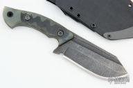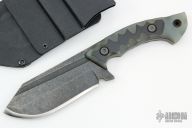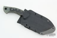 The Cuda by Nathan House features a black tumble finished blade with fullers and full tang construction, .202" Blade Stock 2.134" Blade Depth. The handle has G-10 scales, lanyard hole at the butt. Includes a kydex sheath with belt loop. New from maker.