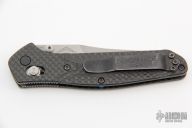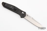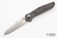 The Warren Osborne designed Benchmade 940 is a popular knife for good reason. It's a comfortable everyday carry knife with its slim design, great ergonomics and lightweight. The 940-1 has a premium CPM-S90V steel blade with a plain edge and a stonewash finish. The carbon fiber handle has stainless steel liners and blue anodized aluminum barrel spacers. The AXIS lock and reversible pocket clip make the knife usable for right and left-handers. Includes the original box and papers.  Excellent Condition.
