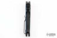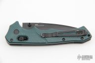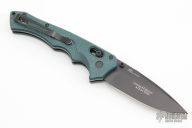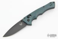 This 615BK-1501 Mini Rukus from Benchmade features a black coated drop point blade with swedge, notched thumb rest and dual thumb studs. The handle is comprised of green G10 over black stainless steel liners and black barrel spacers. Two way tip up carry pocket clip. Features the patented "Axis Lock". Marked "Limited Edition 473 of 1000" on blade. Excellent condition. Includes original box and papers.