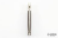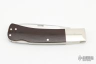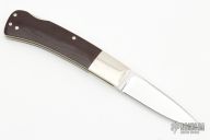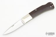This lockback by Mike Franklin is marked "1" on the blade. It has a mirror polished blade with nail nick. The handle has pinched nickel silver bolsters, black linen micarta scales, nickel silver liners, stainless steel backspacer. Has a couple very light scratches, otherwise excellent condition.