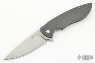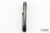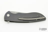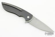 This Sting Flipper by Herman Knives features a tumbled blade and flipper. The handle has a milled and anodized titanium frame, titanium liner and tip up clip and carbon fiber backspacer. Nice detent, lockup and blade seating. Rides on bearings.  Comes with original box. Excellent condition.