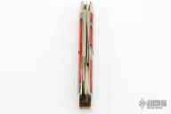 Handle: Dead Skunk Acrylic scales offer a unique look and striking visual appeal while being durable and weather resistant and are flush fit between two shiny nickel silver bolsters. The pattern is eye catching with a bullet end mimicking the shape of the spear point blade. Brass liners and pins round out construction along with the Bottle shield.