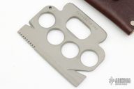 The present invention relates to a survival hand weapon of the nonfirearm type comprising an elongated blade having a beveled cutting edge formed along the forward edge thereof, a plurality of finger receiving openings extending from the edge of the elongated blade opposite the cutting edge for receiving a plurality of fingers from the users hand, and a palm rest extending fromthe plurality of finger openings for extending between the fingers and the palm of the users hand which acts to transfer the shock associated with a particular blow to the palm of the users hand.