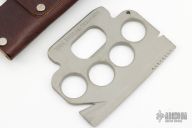 To utilize the hand weapon 10 of the present invention, the respective fingers of the users hand are inserted through the appropriate openings 18, 20, 22 and 24 of the finger receiving portion 16. The entire hand weapon 10 is moved laterally along the fingers to where the finger portion 16 extends between the users knuckles and the middle joints of the fingers, as illustrated in FIG. 3. Once the hand weapon 10 is positioned in this position, the end portions of the fingers are wrapped back toward the palm and engage the palm rest, pushing the same tightly adjacent the palm. In this position, the hand weapon 10 is securely held in the hand and will not tend to drop or be separated thereform under normal circumstances.