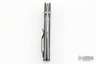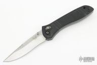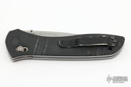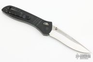 This 710 McHenry & Williams designed folder by Bencmade features a satin finished blade with swedge and dual thumb studs. The handle has black G10 scales over stainless steel liners and black polymer backspacer. Lanyard hole in pommel and black coated stainless steel tip down clip is reversible for right or left hand carry. Scuffs/scratches are visible on the blade and handle otherwise the knife is in excellent condition.