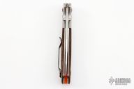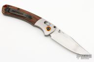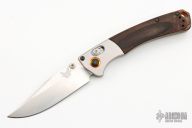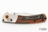 Benchmade Hunt series knives make hunting chores a breeze with a combination of high performance materials and knife design know-how. The Crooked River folder employs premium CPM-S30V stainless steel, for a long-lasting, super sharp cutting edge. The handle of the Crooked River is outfitted with tumbled titanium bolsters and contoured wood scales over stainless steel liners. An orange G-10 backspacer and anodized aluminum pivot ring add a visual pop to this modern hunting knife. The Crooked River has the ambidextrous AXIS lock, a reversible pocket clip, and thumb stud openers to cater to every user. Comes with original box and papers. Has a couple light scuffs, Excellent condition otherwise.