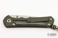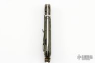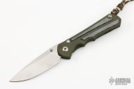 This Large Inkosi from Chris Reeve Knives features a tumble finished S45VN blade with dual thumb studs and notched thumbrest. The handle has an OD Green Cerakote titanium frame over a single barrel spacer with a matching titanium tip up clip. Micarta Inlays.  Includes original box, paperwork and accessories.  Maker's card dated December 29, 2022.  1 of 16.  Excellent Condition.