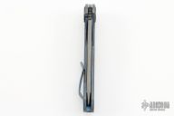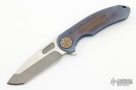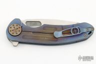 This F3 by Curtiss Knives features a two-tone stonewashed blade with notched thumb rest and flipper. Milled and anodized titanium frame over notched and anodized titanium backspacer. Anodized titanium tip up clip. Smooth and fast opening using a Caged Bearing System. Nice blade seating, detent and lock up. Includes padded zippered case.  Blade Steel: Magnacut.  Excellent Condition.