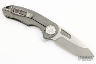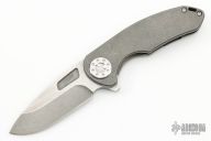 This F3 by Curtiss Knives features a two-tone stonewashed blade with notched thumbrest and flipper. The handle has a tumbled titanium frame with a matching tip up titanium clip. Satin stainless hardware. Rides on bearings, nice detent and lockup.  Comes with original zippered case, box and COA. Excellent condition.