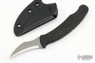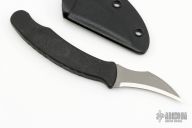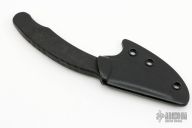 This L-via by Kopis Design features a bead blast and tumble finish hawkbill blade with thumb ramp, .061" blade stock and .784" blade depth, hidden tang construction. The handle is glass filled nylon. Comes with a kydex sheath and original box. New condition.