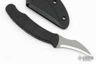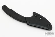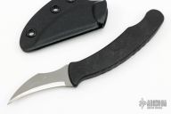 This L-via by Kopis Design features a bead blast and tumble finish hawkbill blade with thumb ramp, .061" blade stock and .784" blade depth, hidden tang construction. The handle is glass filled nylon. Comes with a kydex sheath and original box. New condition.