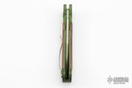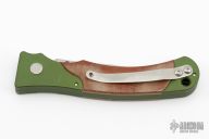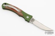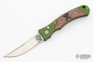 This Small Persian Fighter from Rob Dalton features a satin finish blade and a green aluminum frame with brown linen micarta inserts on both sides. Satin finished clip. Strong and fast coil spring opening. Has a few scuffs, otherwise excellent condition.