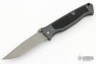 This D/A Vallotton Chameleon by Microtech is dated 5/96, numbered 749, and has the Vallotton logo on the back side of the blade. The release button for automatic opening is under the end of the clip. Has a bead blasted AEBL blade, black aluminum scales with rubber inlays, bead blasted titanium liners, tip up titanium clip. Has a couple light scuffs/scratches, a couple light marks on the frame, otherwise good condition.