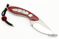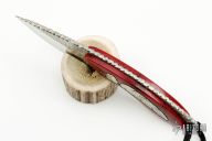 This Buck features a mirror finished blade with textured flats, blade spine and tang, .135" blade stock and 1.235" blade depth, full tang construction. The handle has bloody jasper scales with nickel silver eagle feather inlay. Comes with a wooden display box and COA. Excellent condition.
