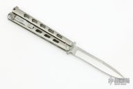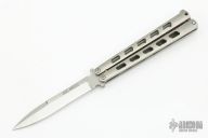 This Arc Angel by Cold Steel features a satin finished blade with false top edge. The handles are satin finished titanium with a tip up stainless steel clip, titanium T-latch at the butt. Has some light scuffs and scratches, great condition otherwise.