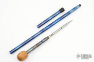 This Titanium Spear Cane by Pavlin Shahanov features a flame finish and a hidden spike. The cane is made from 5 parts and can be assembled like a spear by removing the wooden ball and screwing the end of the spike into the cane. New from maker.