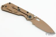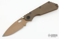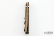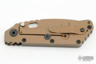 This SMF from Strider Knives features a brown cerakote blade and textured brown G10 and black cerakote titanium handle and matching tip up titanium clip. Notches on thumbrest, rear of handle, and early lockup. Includes Hinderer "Lock Bar Stabilizer" for maximum reverse lock retention. Has some scuffs and scratches, great condition otherwise.