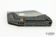 Teryl Todd (A.K.A. Zelrick42 on YouTube) and brother Seth are the creative force behind Todd Knife and Tool. As the US representative for WE Knives, it only makes sense that Teryl would take TKT designs to WE for production. The Roxi 3 is a powerful, tank-like Wharncliffe with modern front flipper deployment and heavy-duty titanium frame lock construction. This version comes with a stonewashed CPM-S35VN blade and tiger stripe flamed titanium handle.