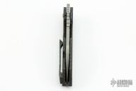 Handle: Dual slabs of tiger stripe flamed titanium make up the handle, milled for a more contoured feel while being relatively flat in carry. Hole milling lends some extra style, while the full-length tiger stripe flamed back spacer is jimped for added traction and style. An integral frame lock with hardened steel lock face and lock bar stabilizer provide secure lockup for use.
