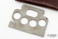 The present invention relates to a survival hand weapon of the nonfirearm type comprising an elongated blade having a beveled cutting edge formed along the forward edge thereof, a plurality of finger receiving openings extending from the edge of the elongated blade opposite the cutting edge for receiving a plurality of fingers from the users hand, and a palm rest extending fromthe plurality of finger openings for extending between the fingers and the palm of the users hand which acts to transfer the shock associated with a particular blow to the palm of the users hand.