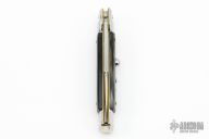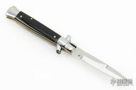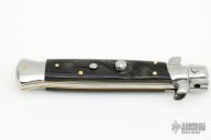 This 9" Picklock by Frank Beltrame features a mirror polished bayonet ground 4mm blade with false top edge. The handle has mirror polished stainless steel bolsters, front and rear, buffalo horn scales, mirror polished brass liners and stainless steel spring. Excellent condition. Comes with a leather slip sheath. This knife has been professionally tuned and polished by Greg's Effects.