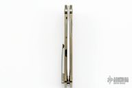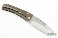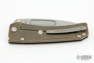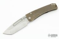 This Slim Midi Marauder from Medford Knife and Tool features a stonewashed drop point tanto blade with thumb stud and fullers. The handle is comprised of a tumbled and anodized titanium frame with tip up clip. Excellent detent, lockup, and seating. Original hard case, papers and box. Excellent condition