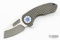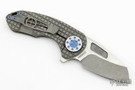 This F3 Compact by Curtiss Knives features a stonewashed, Magnacut blade with notched thumb rest and flipper. The handle has a frag pattern titanium frame over notched titanium backspacer, matching titanium tip up clip. Smooth and fast opening using a Caged Bearing System. Has a stainless lockface insert. Nice blade seating, detent and lock up.  Includes the original box and papers. Excellent condition.